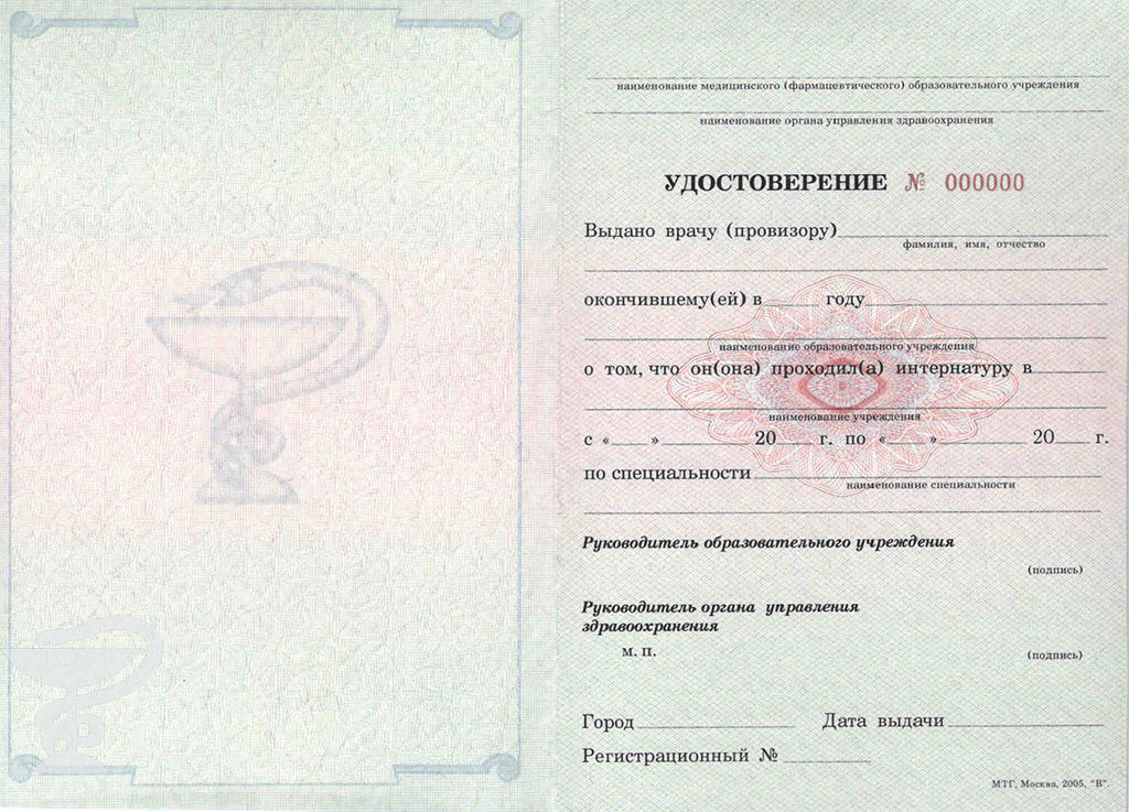 Удостоверение интернатуры
